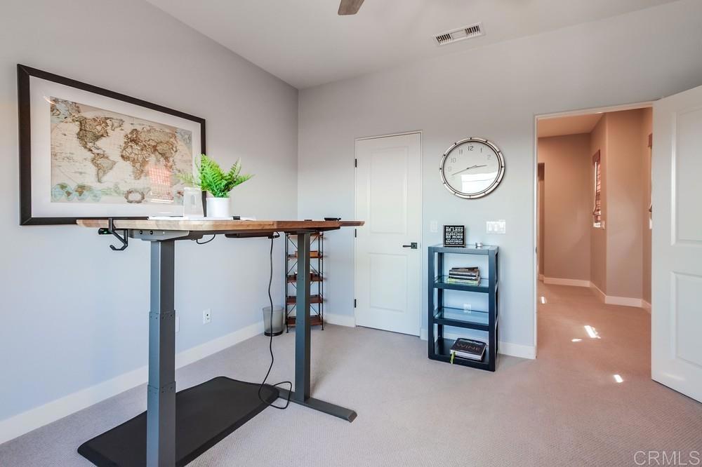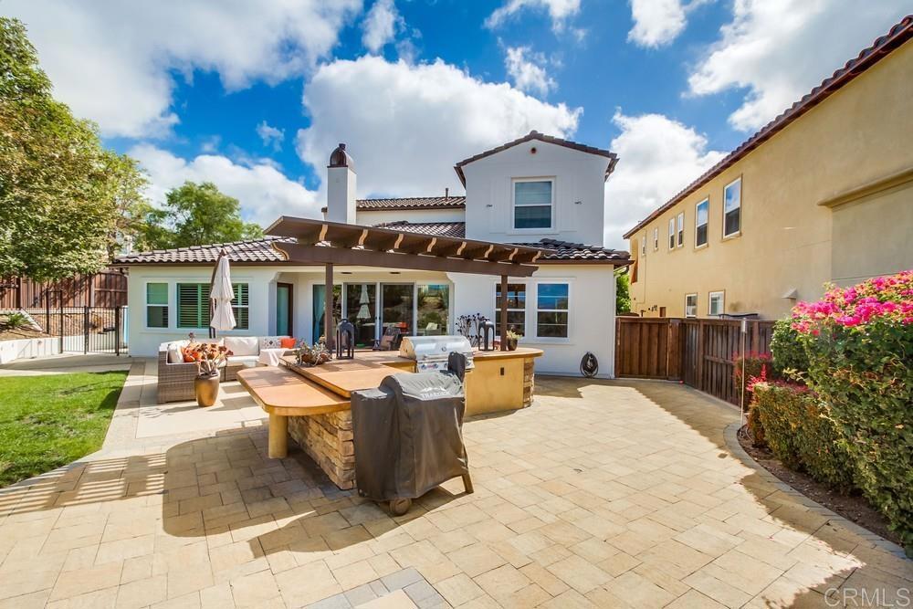 Welcome to this beautifully maintained Spanish-style two-story home offering 4 spacious bedrooms and 3.5 baths, located in a serene neighborhood with picturesque canyon views. Thoughtfully designed for comfort and functionality, the primary suite is conveniently located on the main entry level, providing ease and privacy. Inside, enjoy multiple living spaces including a formal living room, dining room, family room, and a casual breakfast nook adjacent to the kitchen-with high-end appliances. The gourmet kitchen features a central island--perfect for entertaining or everyday meals. A dedicated laundry room with ample built-in storage adds convenience to your daily routine, located on the entry level. Step outside to a backyard made for entertaining--complete with a lush lawn, a peek ocean view, built-in BBQ/bar area, and an expansive patio ideal for gatherings, all overlooking tranquil canyon vistas. The freshly painted exterior enhances the timeless charm of the home's Spanish architecture. Additional highlights include: fully paid for solar, a 3-car garage, oversized driveway, and dedicated boat/RV parking, offering plenty of space for all your vehicles and toys, plus the community club offers a work out room, a recreation room plus a pool is designated for residents only. This is a rare opportunity to own a spacious, move-in ready home in a quiet, well-kept community close to nature yet minutes from local amenities and only a few strides to the hiking trails.